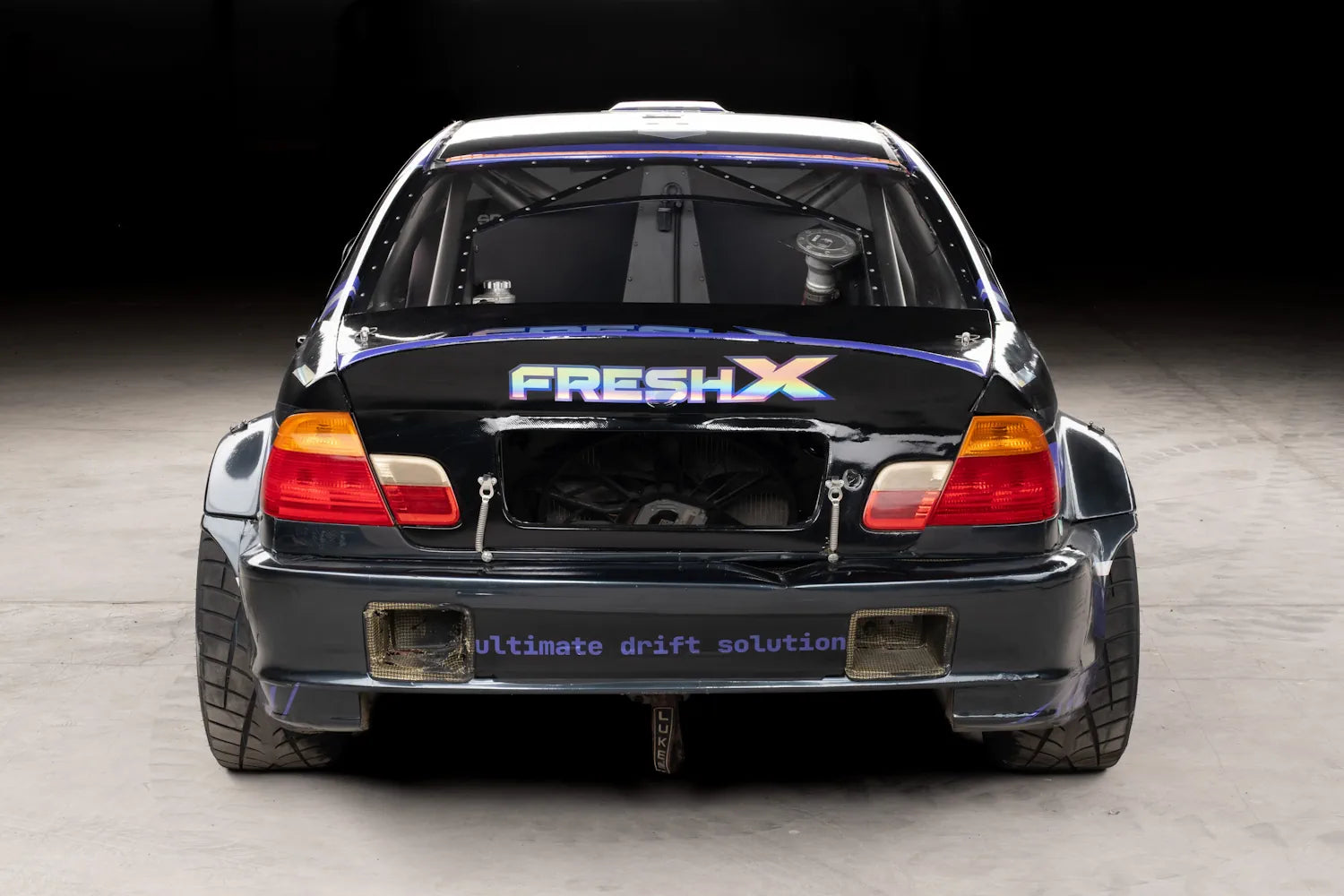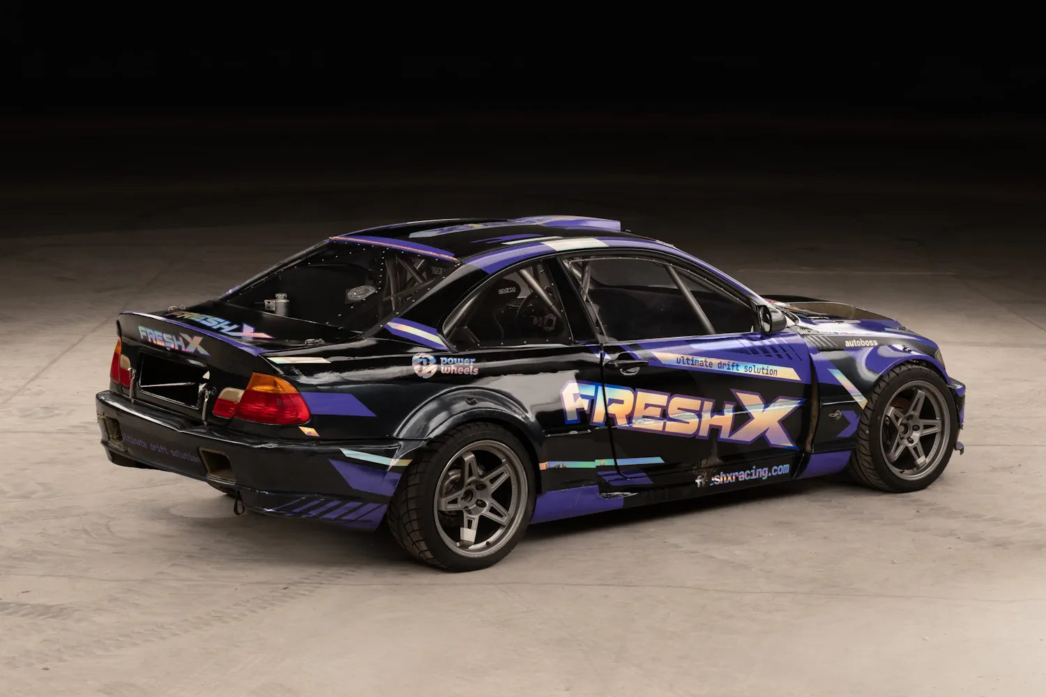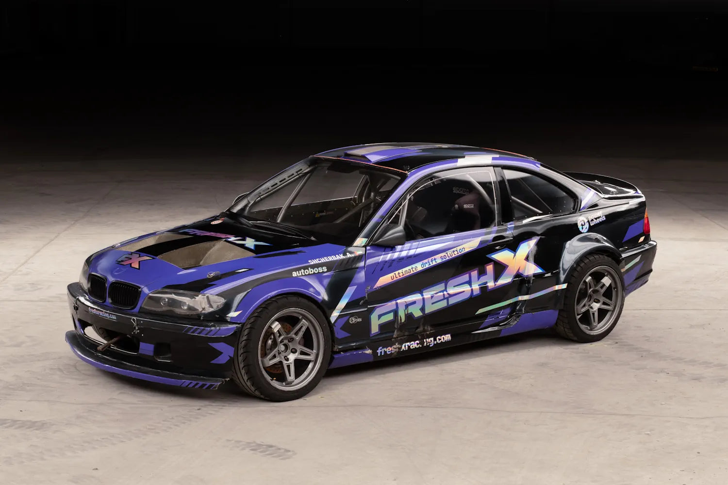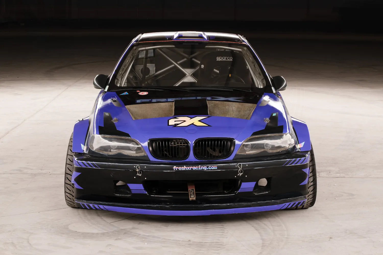 HGK roll cage and carbon-Kevlar body kit, reinforced rear subframe by Fresh Racing, Sparco seat and harness, OMP fire suppression. Full Wisefab suspension geometry, BC Racing coilovers, Wilwood brakes.