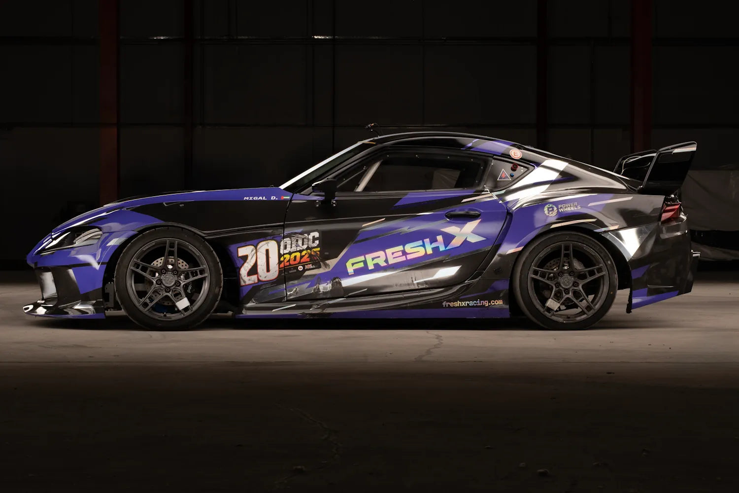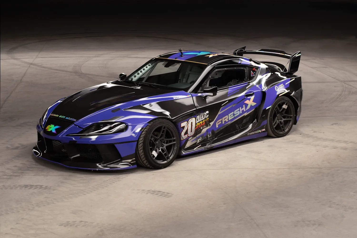 This Supra A90 was built by our team several years ago and brought to Dubai to compete locally. It didn't take long to see the result — the car was the fastest on the grid from day one. A full carbon-Kevlar body by Fresh Racing, a high level of detail in every system, and the kind of presence that works equally well on track and at a show.